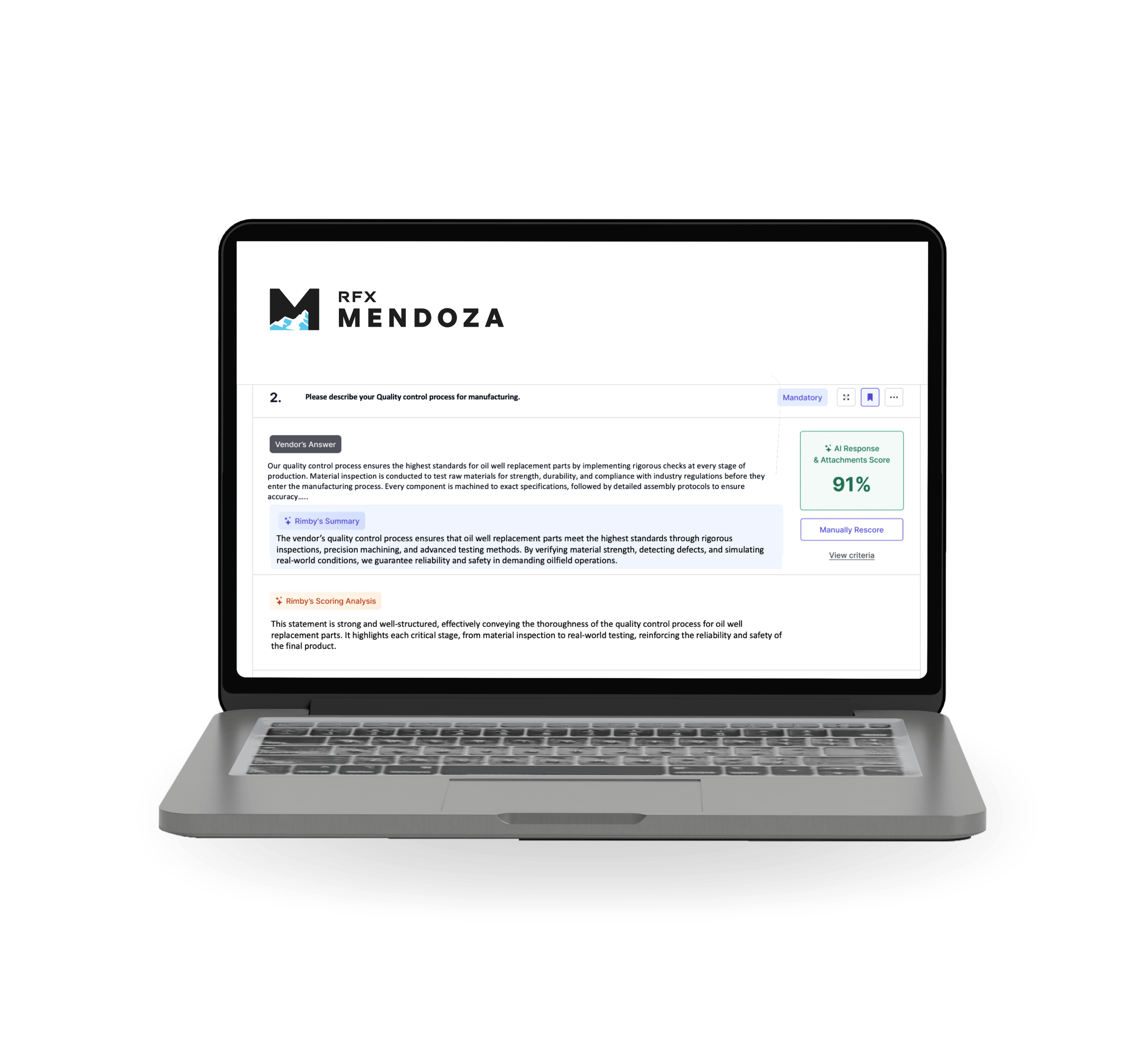 RFx Mendoza is the leading AI solution for vendor selection & intelligent sourcing for RFx documents (RFP, RFQ, RFI, DDQ, Vendor Qual & Security Questionnaires).